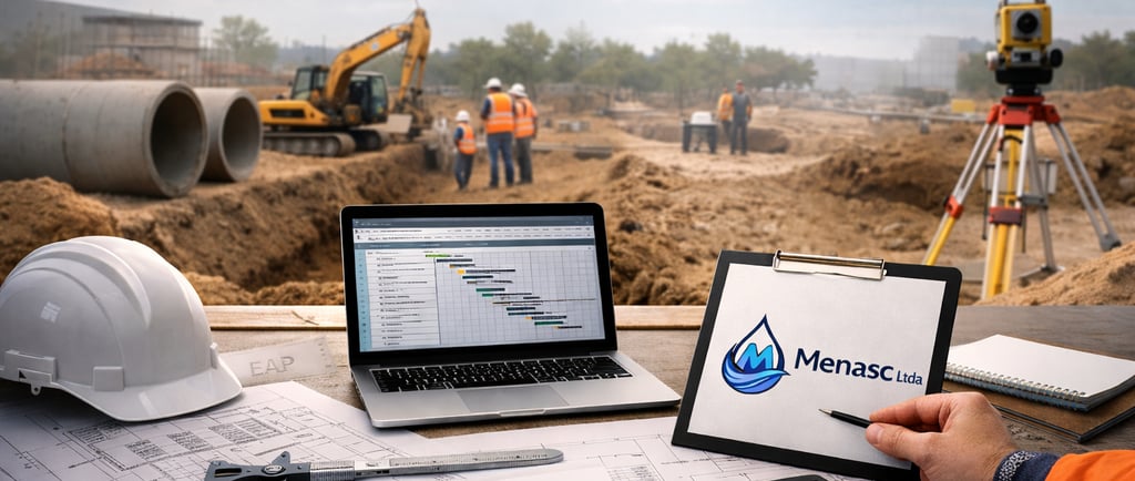 Em contratos de rede coletora, interceptores, adutoras, ETEs e ligações domiciliares, falhas no planejamento impactam diretamente em prazo, margem contratual e equilíbrio econômico-financeiro.